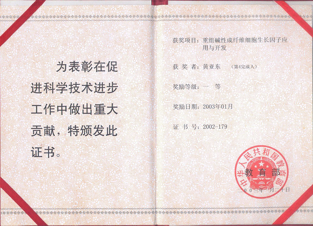 教育部一等獎(jiǎng)-重組堿性成纖維細(xì)胞生長(zhǎng)因子應(yīng)用于開發(fā)