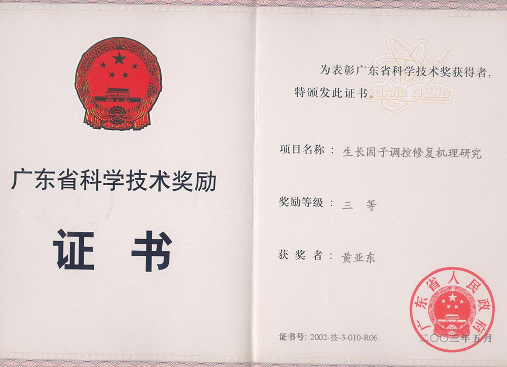 廣東省科學(xué)技術(shù)獎(jiǎng)勵(lì)三等獎(jiǎng)-生長(zhǎng)因子調(diào)控修復(fù)機(jī)理研究