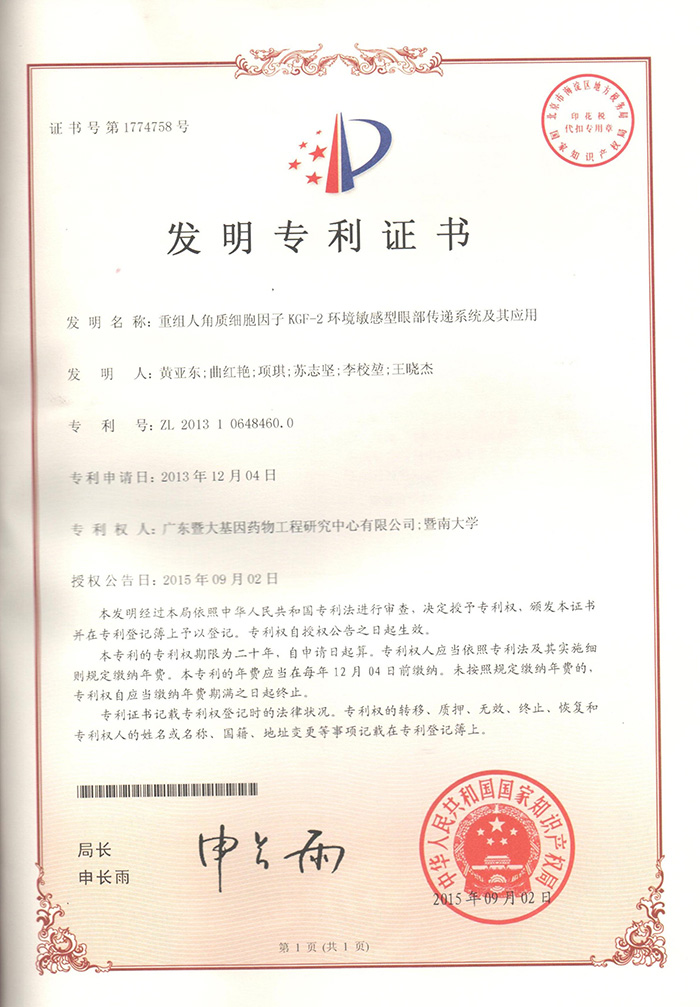 吉林省科學(xué)技術(shù)進(jìn)步獎(jiǎng)二等獎(jiǎng)-重組細(xì)胞生長(zhǎng)因子促創(chuàng)傷修復(fù)機(jī)理與應(yīng)用研究