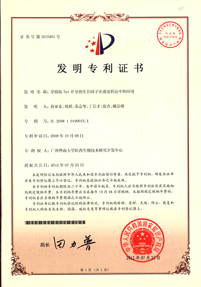 穿膜肽Tat介導(dǎo)的生長(zhǎng)因子在透皮轉(zhuǎn)運(yùn)中的應(yīng)用