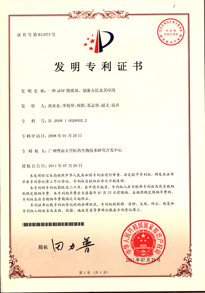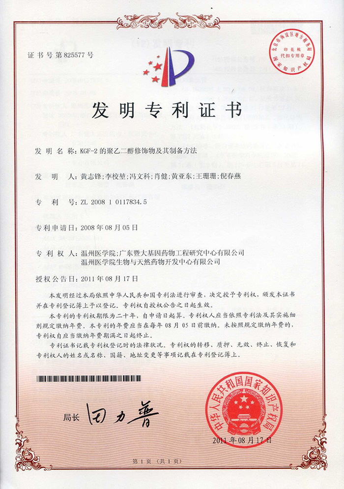 中國藥學(xué)會(huì)科學(xué)技術(shù)一等獎(jiǎng)-基因工程一類新藥重組成纖維細(xì)胞生長(zhǎng)因子(rFGF)系列產(chǎn)品的開發(fā)與應(yīng)用