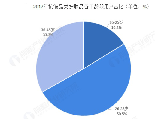 圖:2017年抗皺類護(hù)膚品各年齡段用戶占比