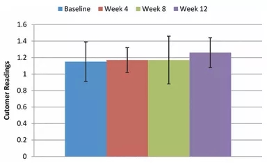 圖:使用水楊苷精華液12周內(nèi)膚彈性的變化